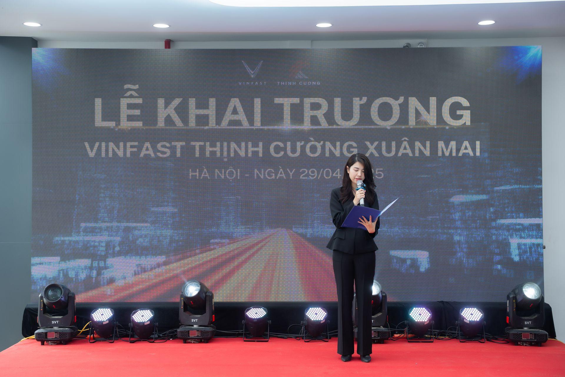 Đại diện VinFast Việt Nam - Chị Lê Ngọc Diễm My cũng gửi lời chúc mừng và bày tỏ niềm tin mạnh mẽ vào sự phát triển của showroom Xuân Mai – một trong những mắt xích quan trọng trong chiến lược mở rộng hệ sinh thái xe điện thông minh tại Việt Nam.